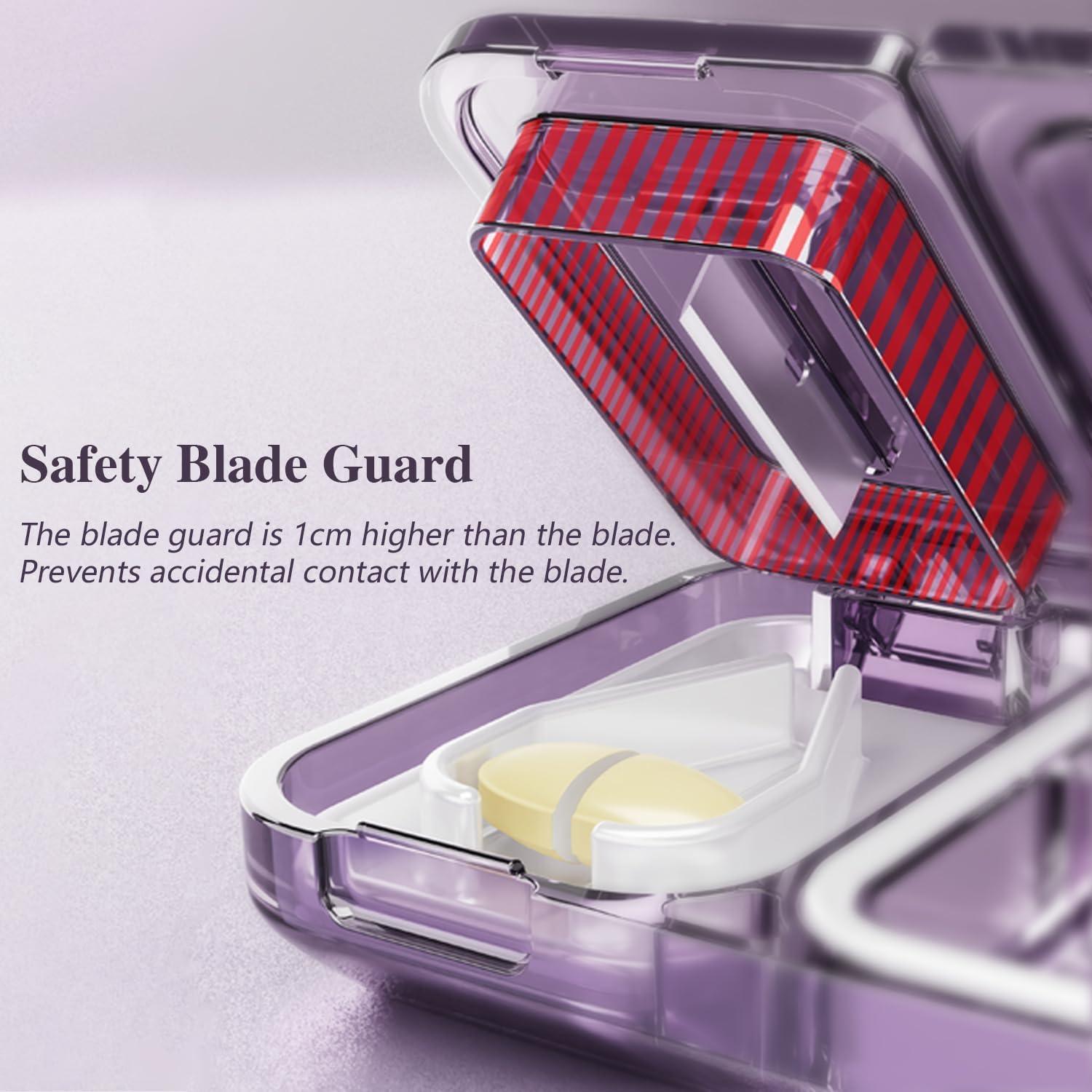 【Thoughtful wrap-around blade guard】1mm higher than the blade. Effective prevention can prevent accidental contact with the blade. However, please keep children and pets away from the pill cutter.