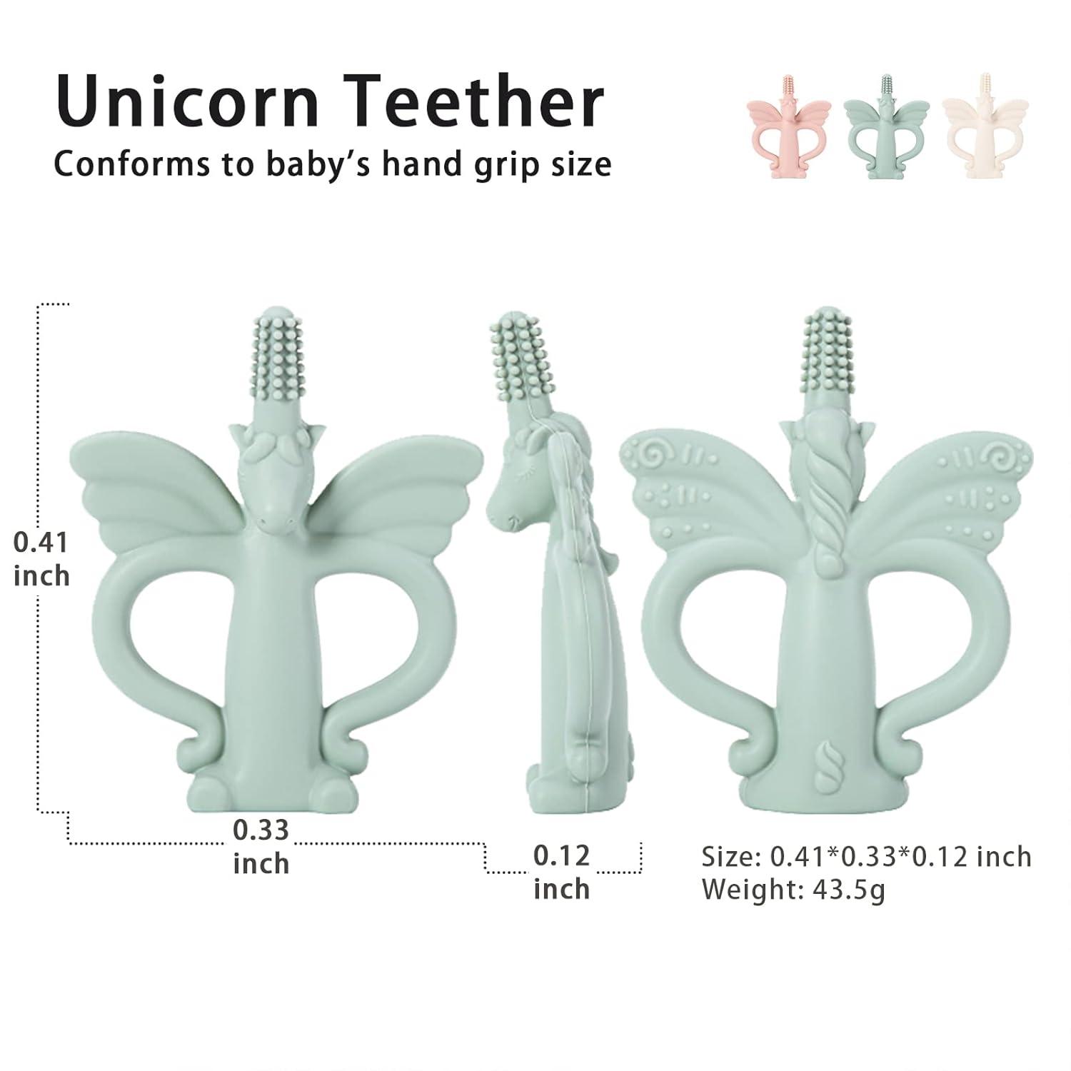 Teething Toys – 360° Silicone Baby Toothbrush Teether – Cute Unicorn Teether to Relieve Teething Pain and Massage Gums – Food Grade & Easy to Clean – Great Gifts for Friends’ Babies (1pc/Green)