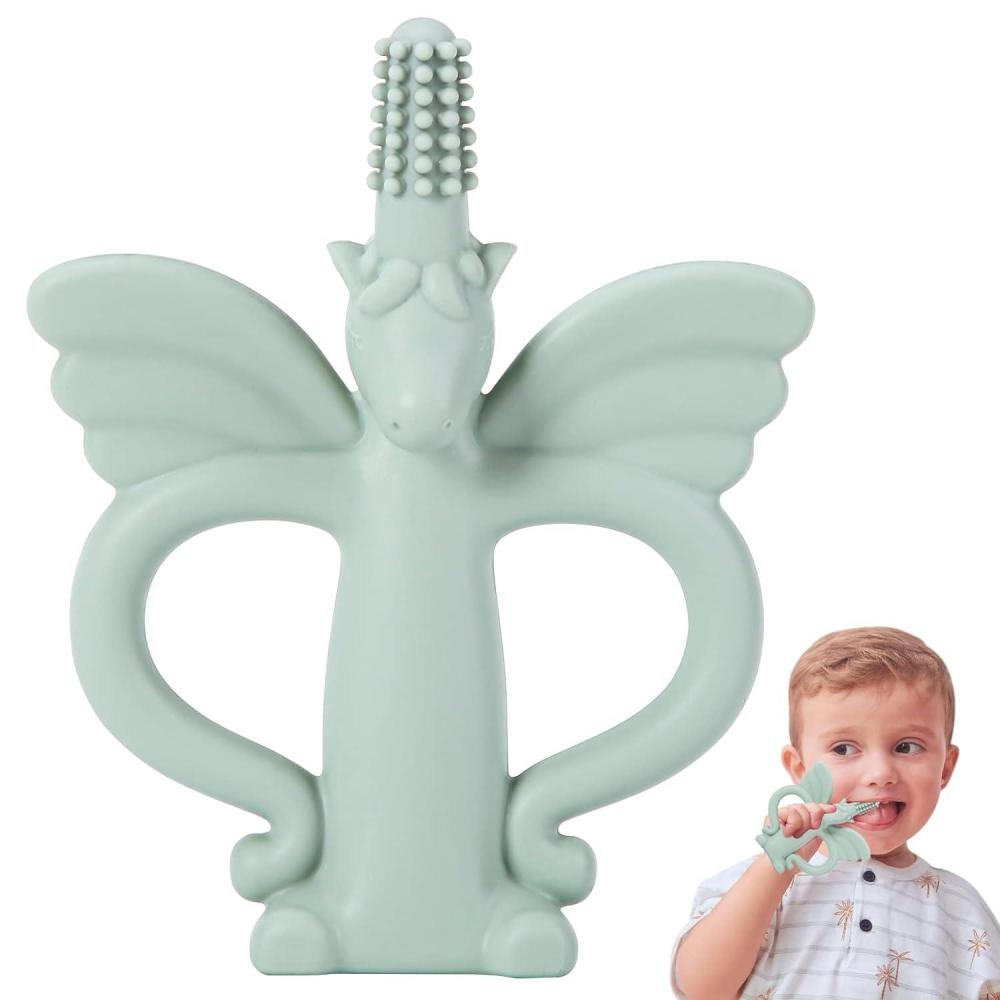 Teething Toys - 360° Silicone Baby Toothbrush Teether - Cute Unicorn Teether to Relieve Teething Pain and Massage Gums - Food Grade & Easy to Clean - Great Gifts for Friends' Babies (1pc/Green)