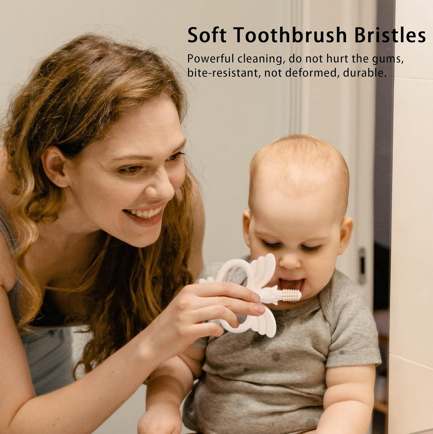 Teething Toys - 360° Silicone Baby Toothbrush Teether - Cute Unicorn Teether to Relieve Teething Pain and Massage Gums - Food Safe & Easy to Clean - Great Gifts for Friends' Babies (1pc/Beige)